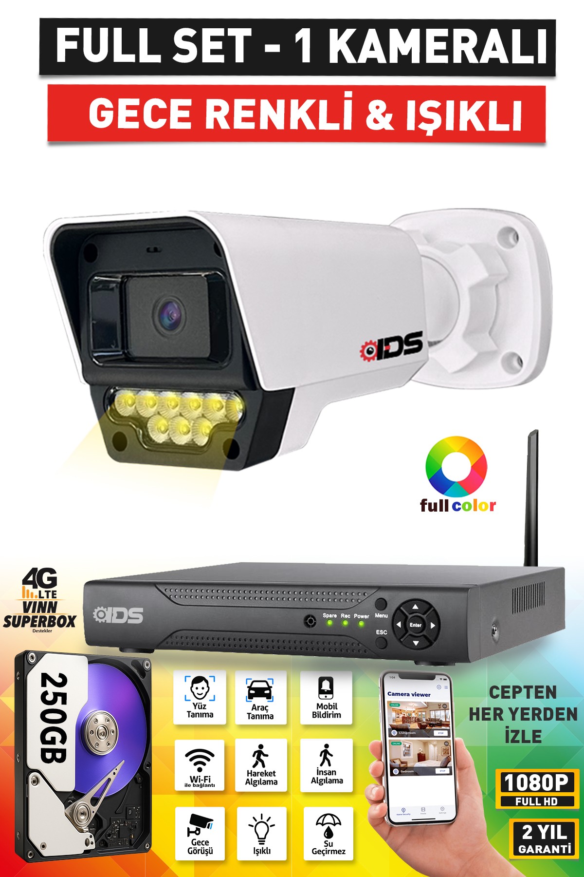 9 Warm LED ile Güçlü Gece Görüşü: Karanlıkta bile net ve detaylı görüntüler. Kamera ledleri ışık gibi yanar ve ışığından aldığı güçle ortamı aydınlatır ve renkli çekim yapar.