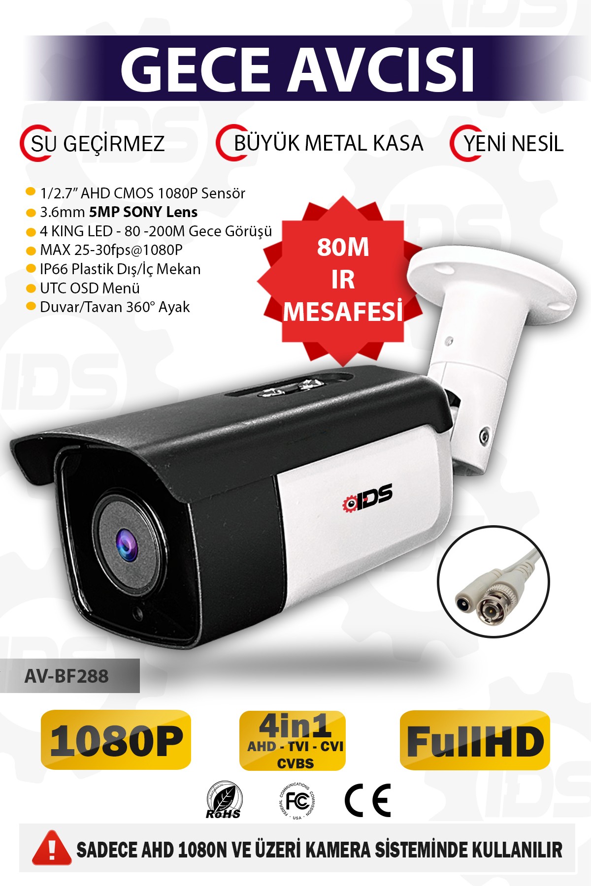 ÜRÜN AHD KAMERADIR. ANALOG SİSTEMLERDE ÇALIŞMAZ.