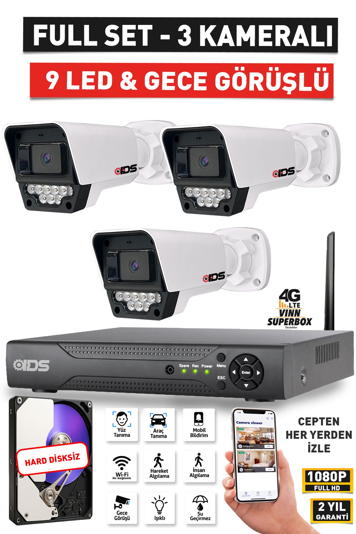 | Kamera Sayısı | 3 Kameralı Set |