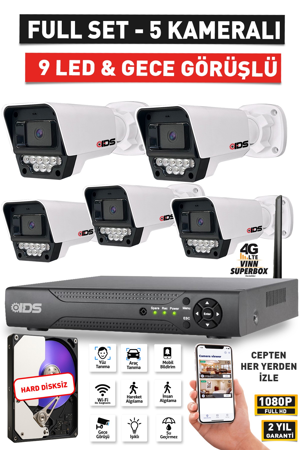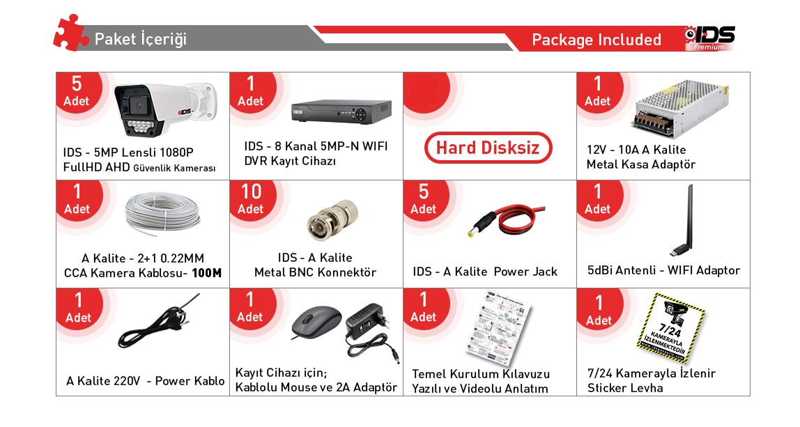 | Kamera Sayısı | 5 Kameralı Set |