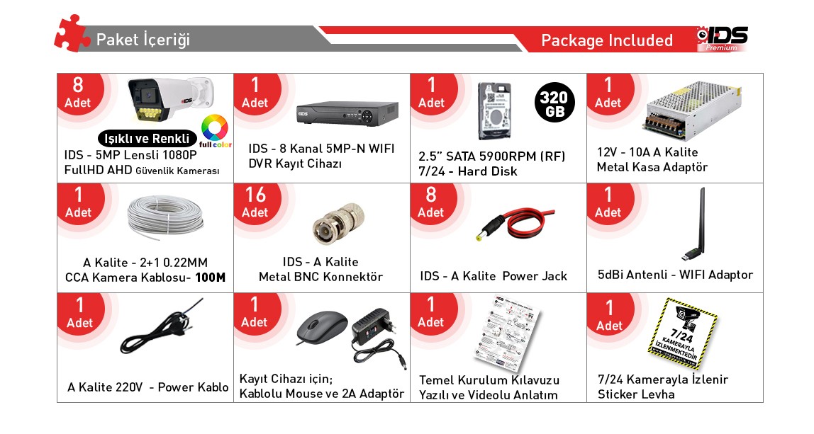 | Kamera Sayısı | 8 Kameralı Set |