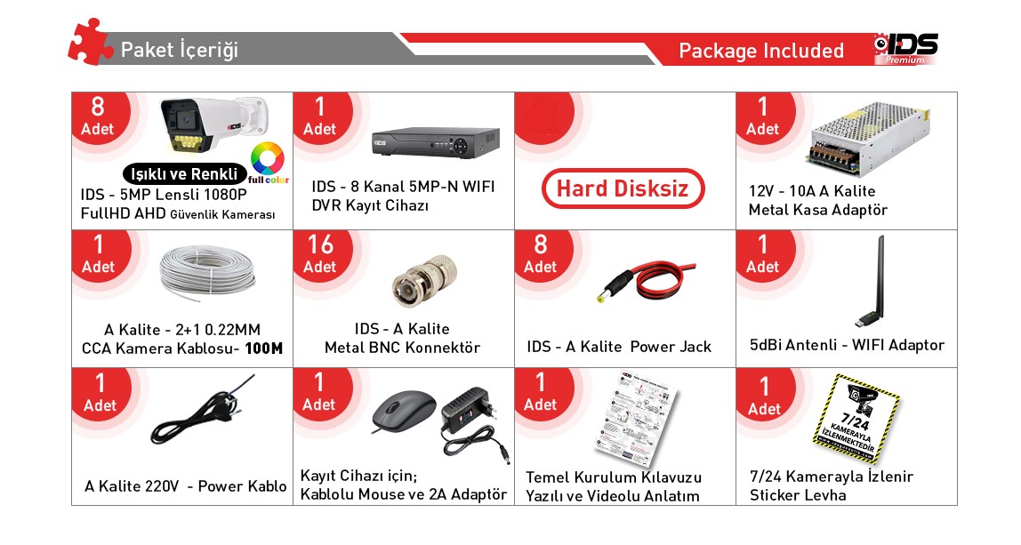 | Kamera Sayısı | 8 Kameralı Set |