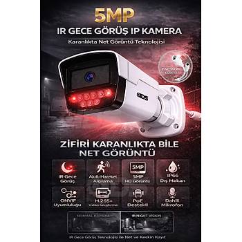 5MP yüksek çözünürlüklü IR gece görüş IP güvenlik kamerası, ev, iş yeri, depo, bahçe ve dış mekan güvenliği için geliştirilmiş profesyonel bir güvenlik çözümüdür. Gelişmiş IR (Kızılötesi) gece görüş teknolojisi sayesinde kamera tamamen karanlık ortamlarda bile net ve detaylı görüntü kaydı yapabilir.