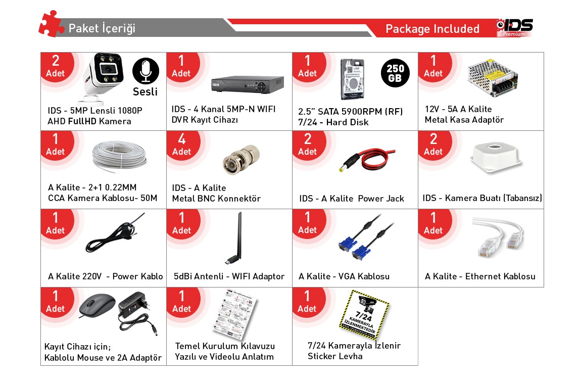 | Kamera Sayısı | 2 Kameralı Set |
